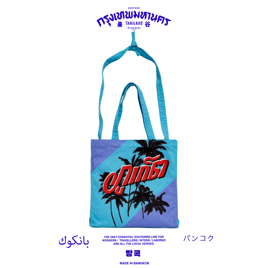 กระเป๋า Overnight Bag ดีไซน์เรียบเท่ มาพร้อมลายปักต้นมะพร้าวที่ถ่ายทอดรายละเอียดอย่างพิถีพิถัน พร้อมการไล่เฉดสีอย่างลงตัว สะท้อนบรรยากาศเมืองร้อนในแบบฉบับกรุงเทพฯ ได้อย่างมีเอกลักษณ์ ผสานกลิ่นอายวินเทจเข้ากับความเป็นสตรีทร่วมสมัยอย่างลงตัว