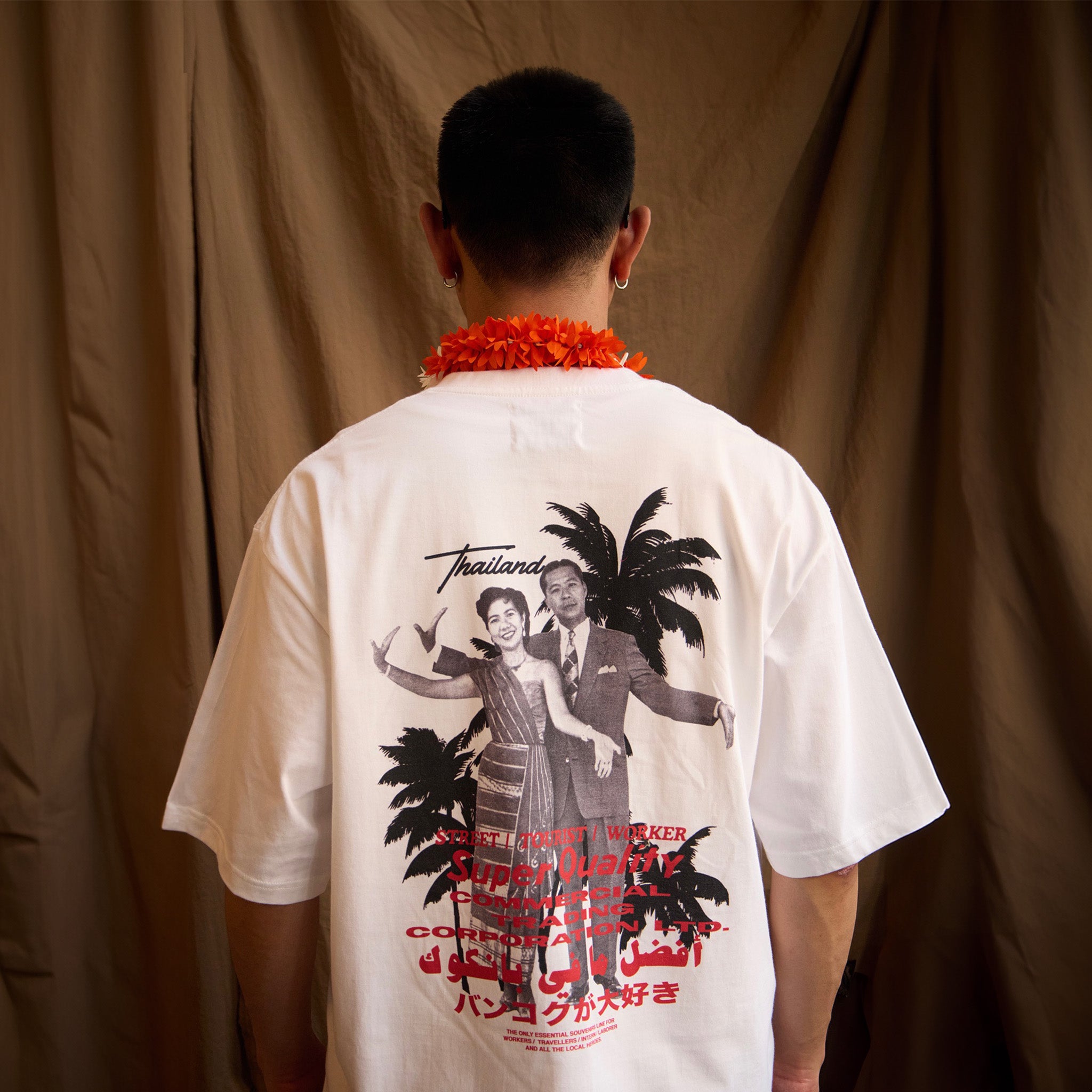 The “Ram wong” (Thai folk dance) print on this shirt came from an image we had seen for years, but never knew its original source—