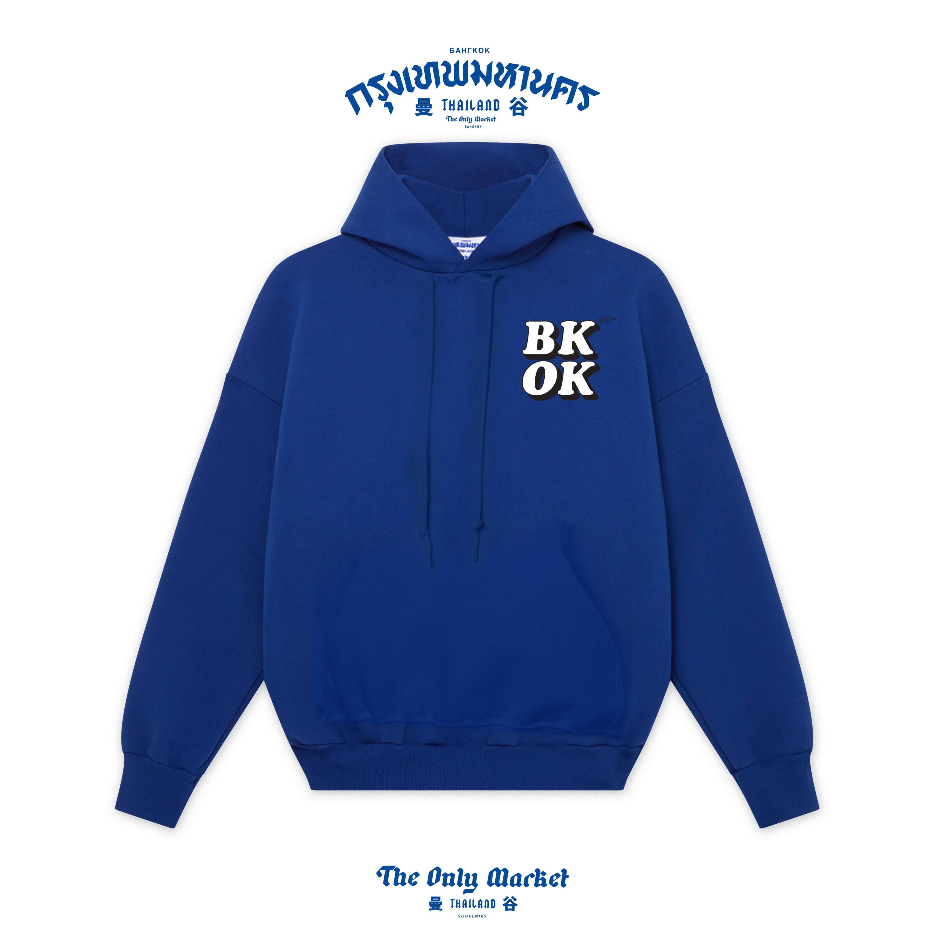 It's back! The cool blue Bangkok Hoodie is here. It's made from soft, comfortable fabric and featuring a "BK OK HOODIE" logo print. Available in sizes M, L, XL, and up to 2XL. Now in stock!