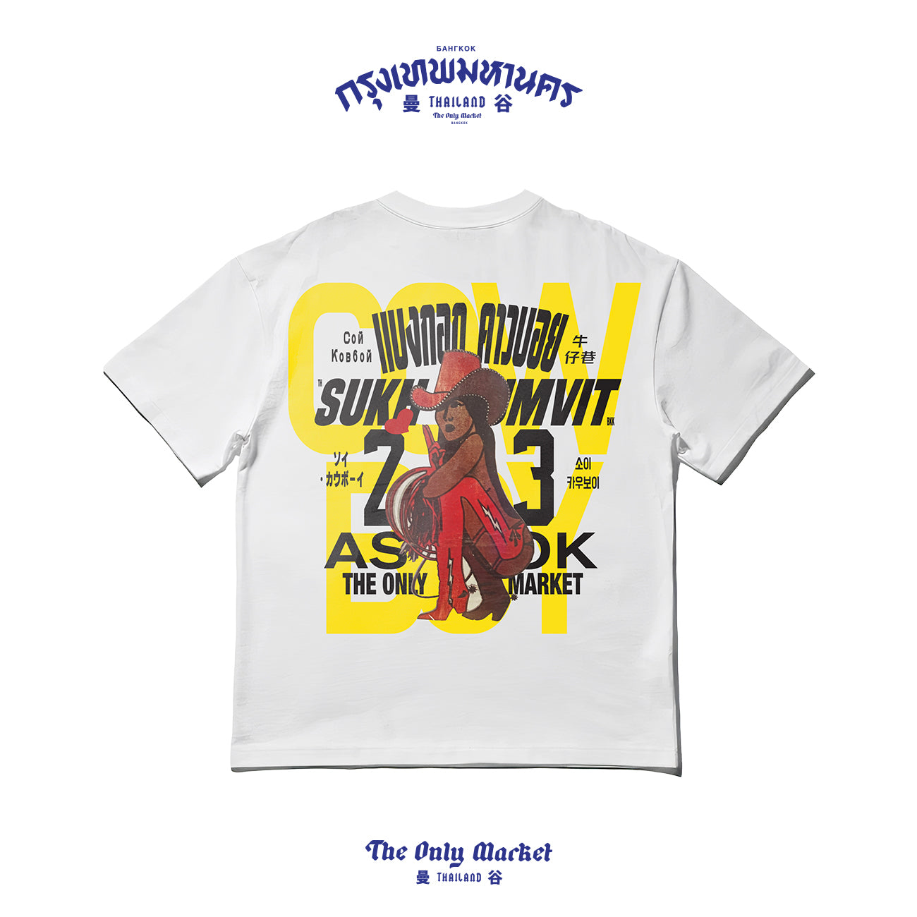 Oversized “Cowboy” T-Shirt, thinking of neon lights, late-night energy, and that one street in Bangkok that never slows down as know as Soi Cowboy. This tee is all about the bold, colorful vibe of Bangkok after dark. With a street-cool design and a nod to local nightlife culture, it’s a statement piece that’s easy to wear and hard to miss. Chill, edgy, and full of character. It's just like the city itself.