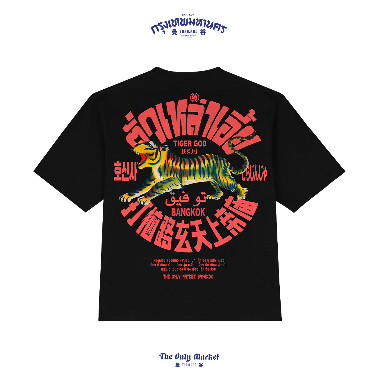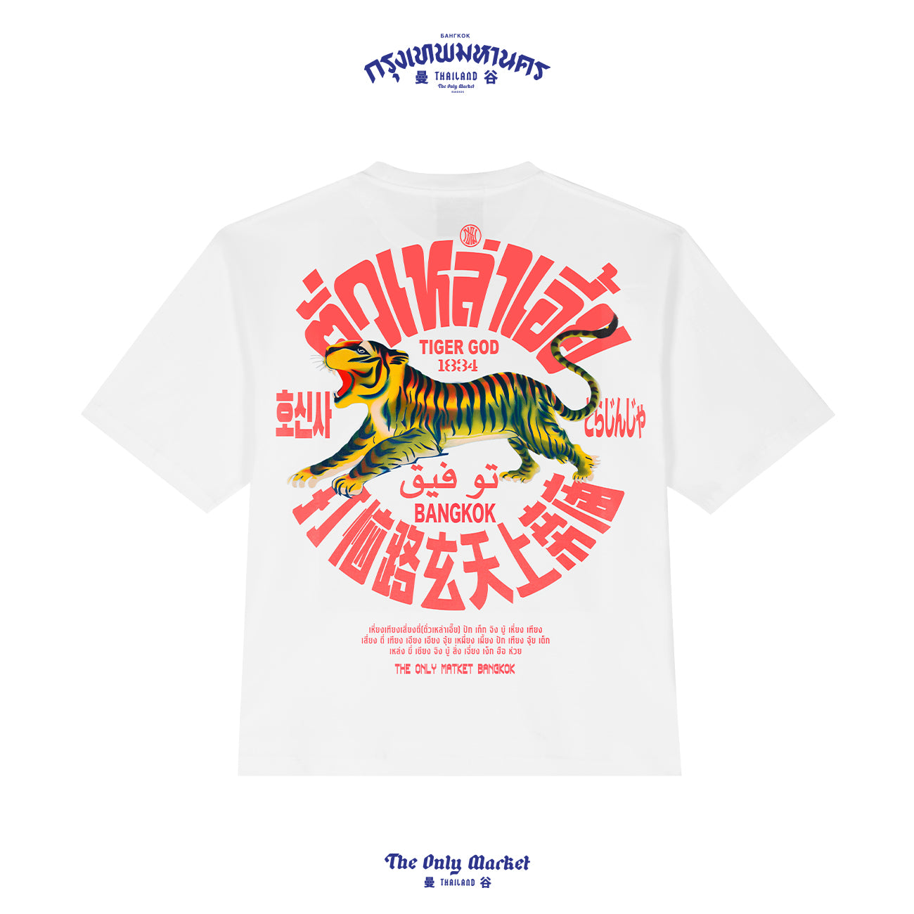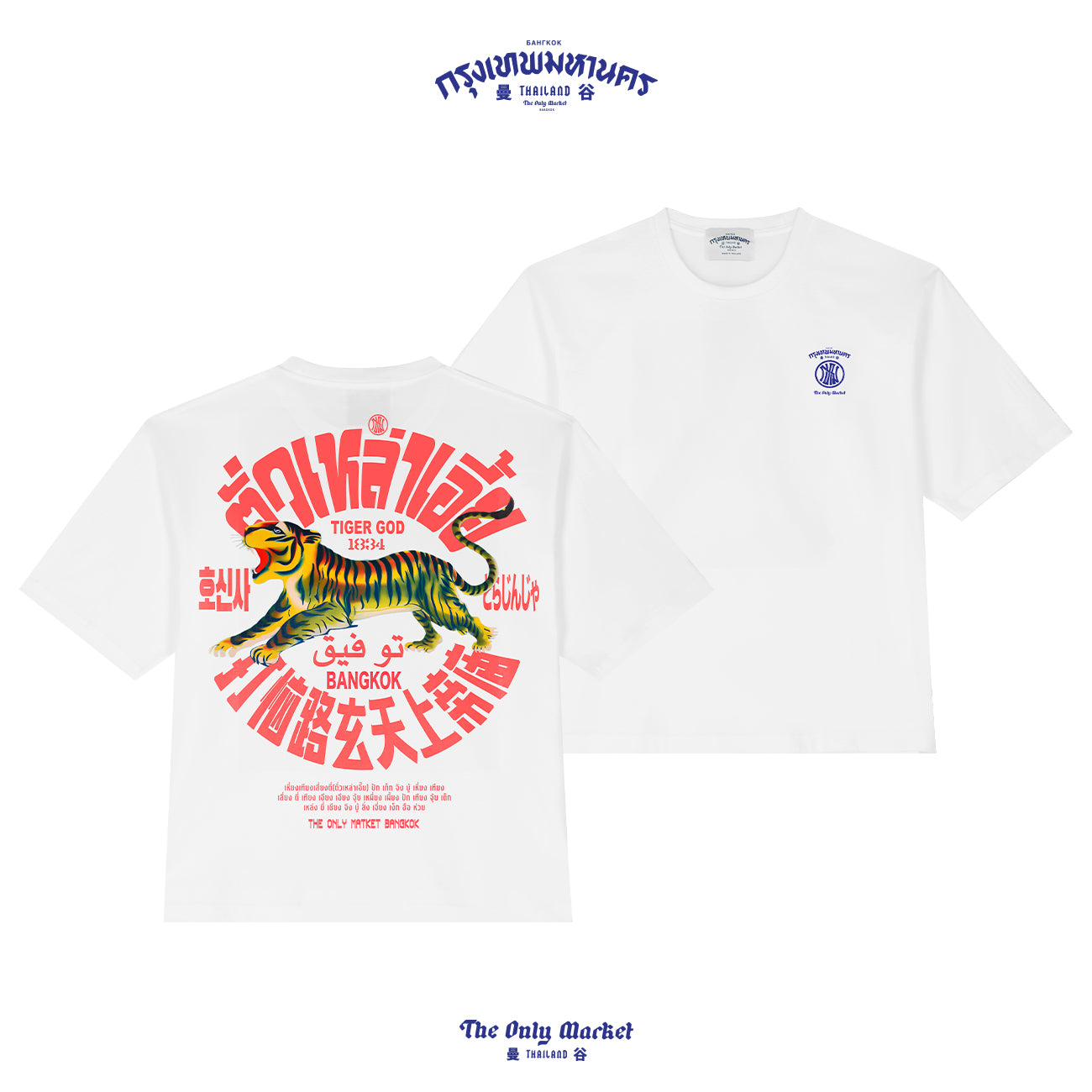 The “TIGERGOD” T-shirt, the latest drop from The Only Market Bangkok, it's here! This oversized tee features a bold new design with sharp details printed using high-quality digital print. Available in two exclusive colors, it’s a standout piece that’s cool and one-of-a-kind. Perfect for city strolls or as a unique souvenir from Bangkok.