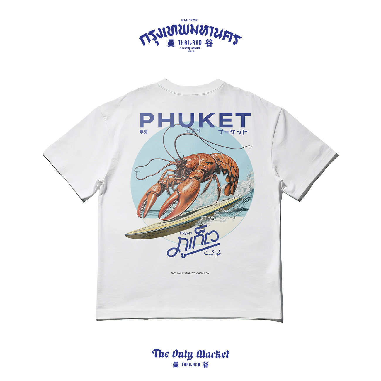 Oversized T-shirt – "PHUKET-LOBSTER" Inspired by the southern sea breeze and the charm of Phuket. A place known for its natural beauty, rich culture, and laid-back coastal life.The design is simple yet distinctive, capturing the easygoing mood of a seaside getaway. Easy to wear and perfect for any casual look.
