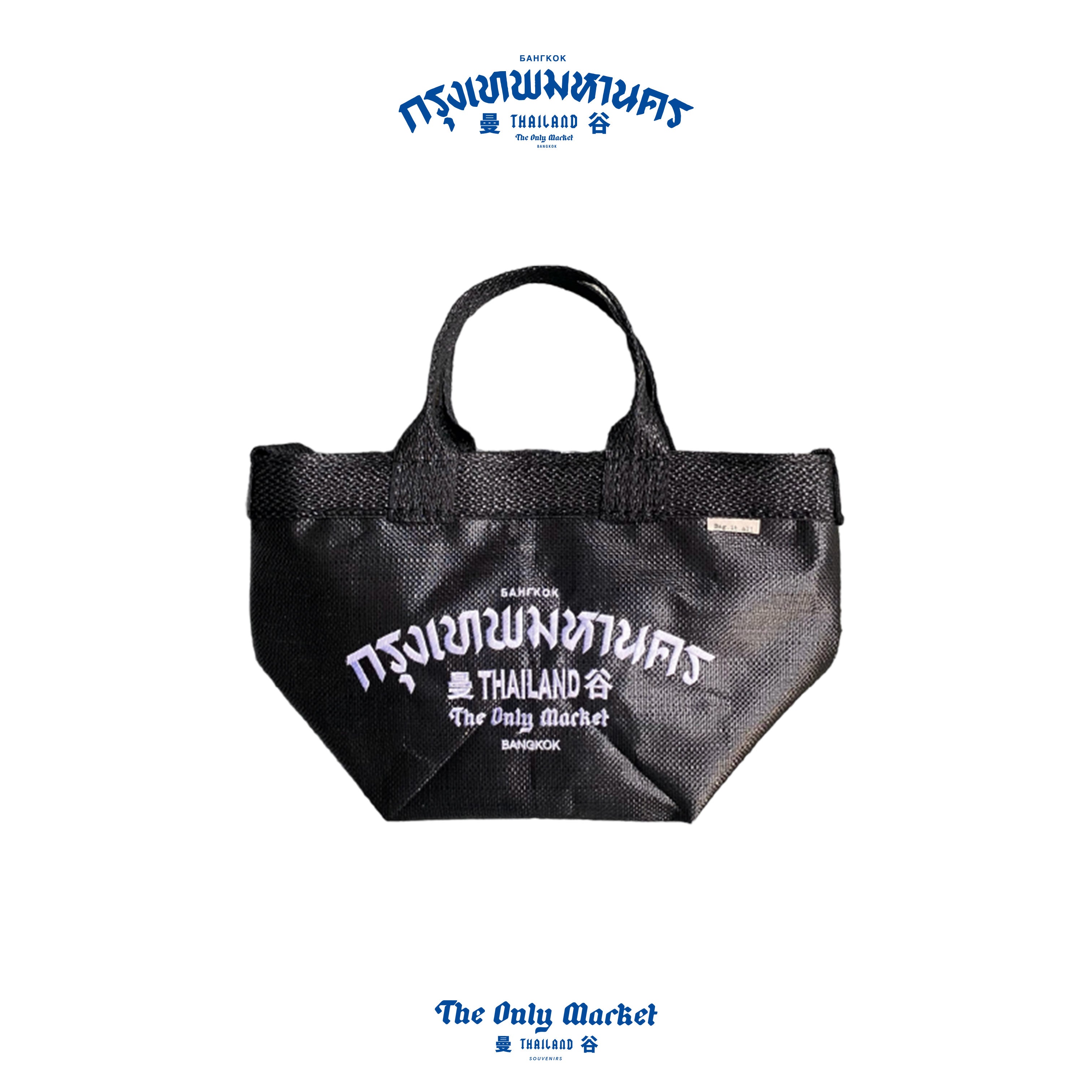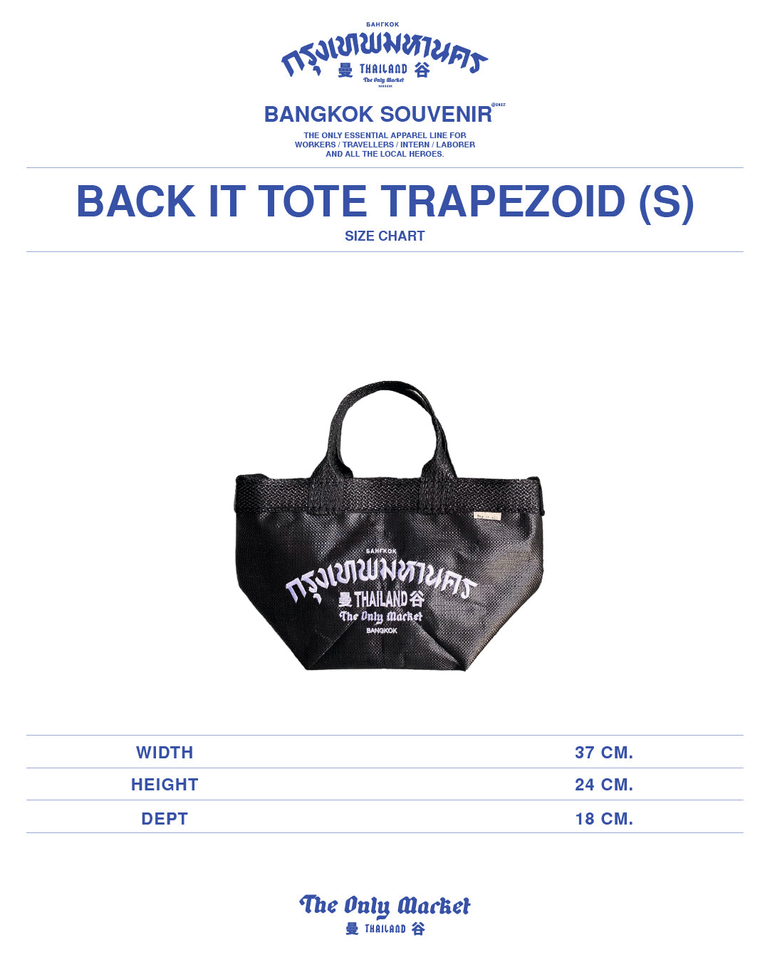 BAG IT BLACK TRAPEZOID - S เป็นกระเป๋าอีกรุ่นที่ Made in Thailand โดยโรงงานผลิตกระสอบนำเซตผ้าที่เหลือ มาตัดเย็บเป็นกระเป๋าทรงน่ารัก ใช้งานได้ง่าย recycle 100% มีให้เลือกทั้งแบบทรงเหลี่ยมและคางหมู